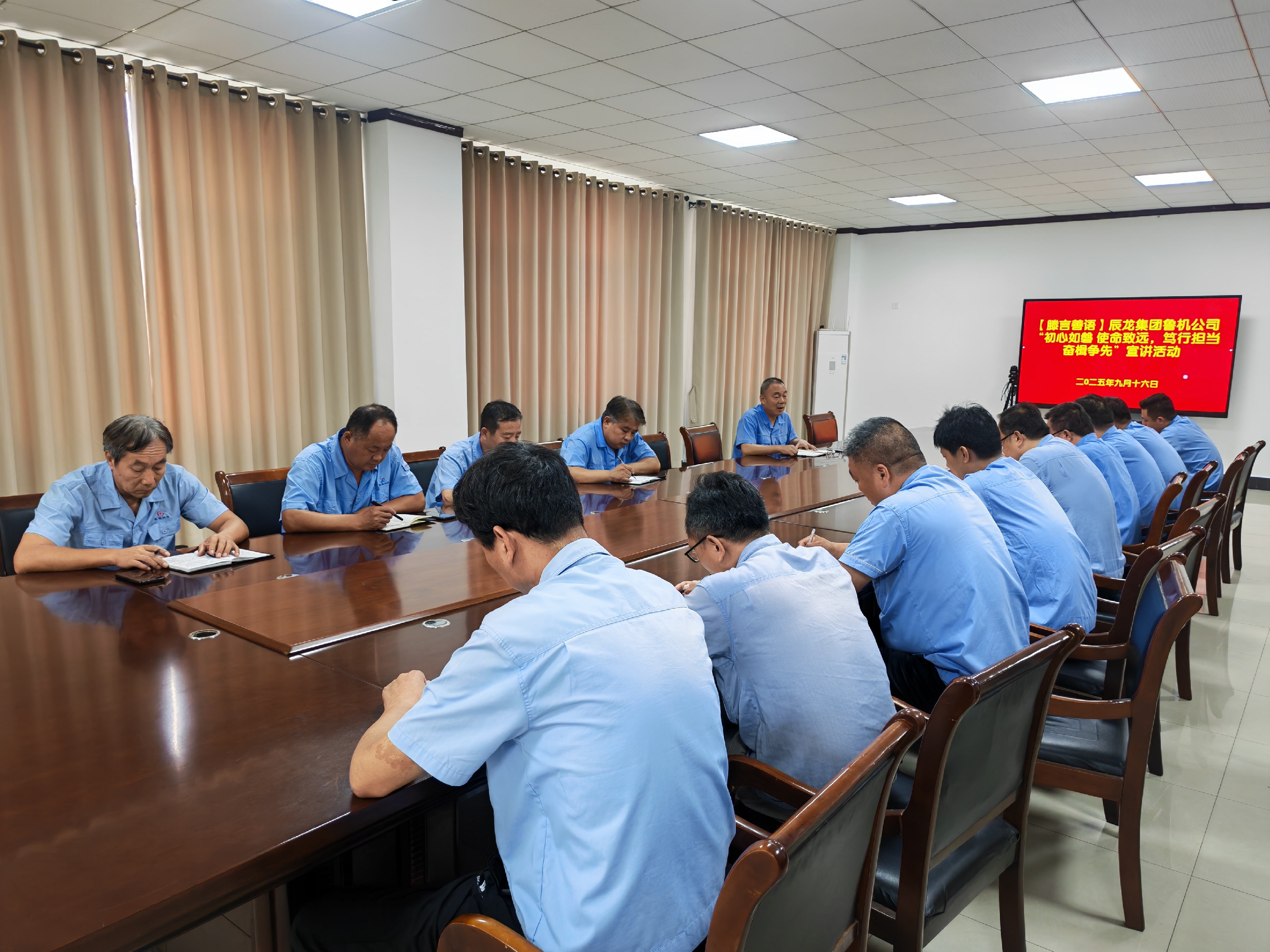 9月16日,辰龍集團(tuán)魯機(jī)公司 開(kāi)展“初心如磐,使命致遠(yuǎn),篤行擔(dān)當(dāng),奮楫爭(zhēng)先” 精神宣講活動(dòng)。生產(chǎn)運(yùn)營(yíng)中心黨員及業(yè)務(wù)骨干共計(jì)14人參加了會(huì)議。會(huì)議由公司黨委委員、生產(chǎn)運(yùn)營(yíng)中心主任秦加泉同志主持。